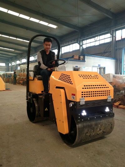 此款壓路機(jī)自重1050kg,振動(dòng)力可達(dá)3噸,液壓轉(zhuǎn)向。